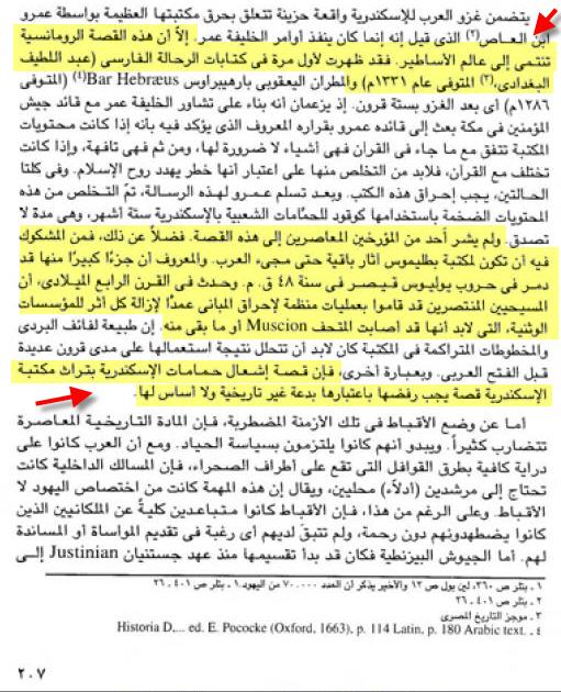 تبرئة عمر ابن العاص من حريق مكتبة الأسكندرية