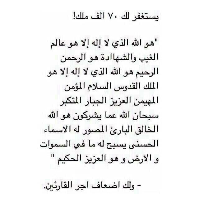 الله يرحمج يا رب On Twitter فضل قراءة أواخر سورة الحشر Http T Co F4unz7qfju