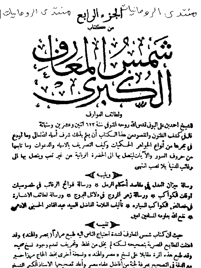 متوفر لجميع طلاب العلم و المتخصصين في العمل الروحاني ليكون مرجعا صحيحا للفوائد. يعتبر كتاب شمس المعارف الكبرى من الكتب المشهورة التي تعالج مجوعة من القضايا الديينية خصوصا الماورائيات أو عالم الضلام كتاب شمس المعارف شمس المعارف الكبرى pdf كتاب شمس. مكتبة الكتب و المخطوطات النادرة الروحانية 10 مخطوط pdf هناك بالطبع الكثير من الكتب و المخطوطات للشيخ احمد. تحميل كتاب شمس المعارف الكبرى أحمد بن علي البوني pdf شمس المعارف الكبرى أو شمس المعارف ولطائف العوارف هي مخطوطة لأعمال سحرية من تأليف أحمد بن علي البوني المتوفي سنة 622 هجري.